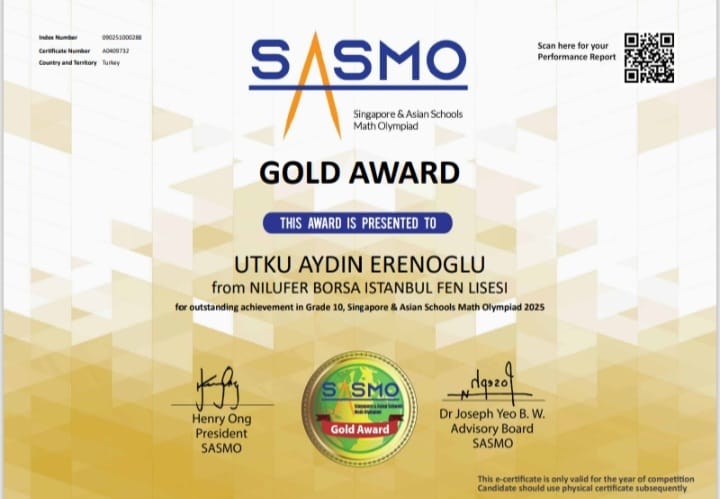 • SASMO (Singapur & Asya Okulları Matematik Olimpiyatı)’nda Altın Madalya kazandı.